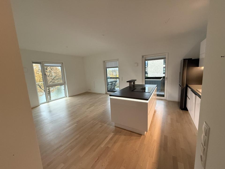 Die neuwertige und hochwertig ausgestattete Wohnung im 1. OG wurde 2021 fertiggestellt. Die Wohnung besticht durch ihre Lage direkt am Wasser – jedes Zimmer bietet einen unverbaubaren Elbblick sowie den Blick ins Grüne. Der Zugang zur Wohnung ist barrierefrei und es gibt einen Fahrstuhl bis in die Tiefgarage.