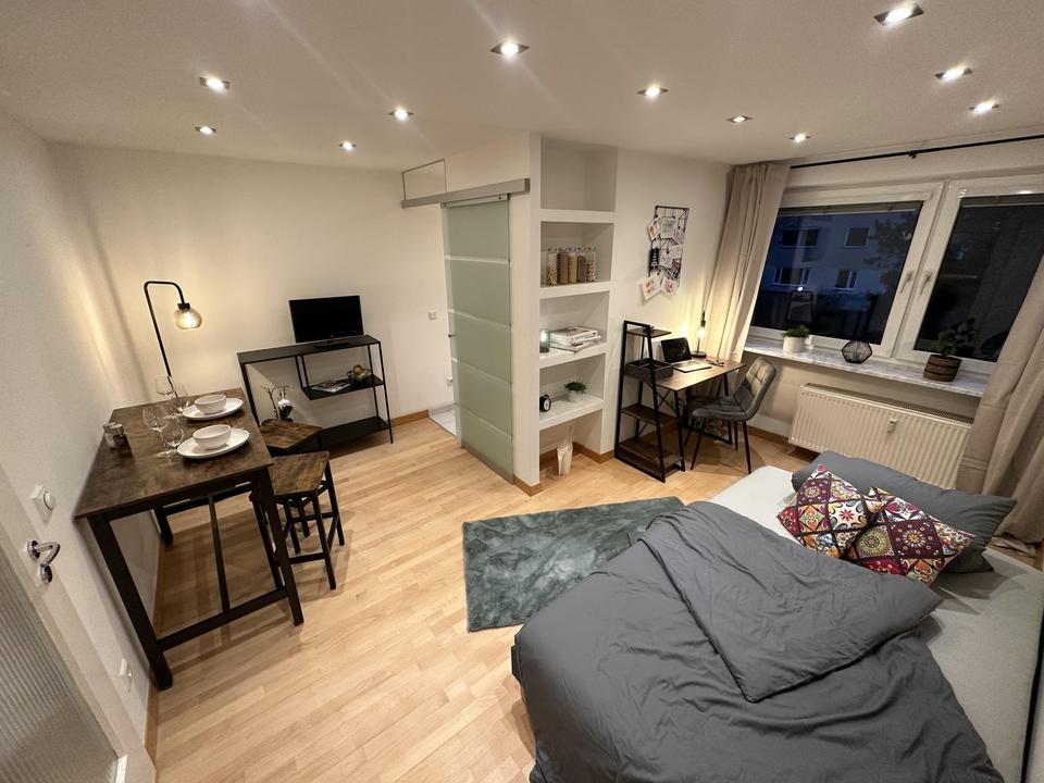 Diese modern möblierte, ansprechende Wohnung, in der ersten Etage, zeichnet sich durch eine geschmackvolle Innenausstattung aus und kann zum 16.01.2026 befristet (6-36 Monate) bezogen werden.