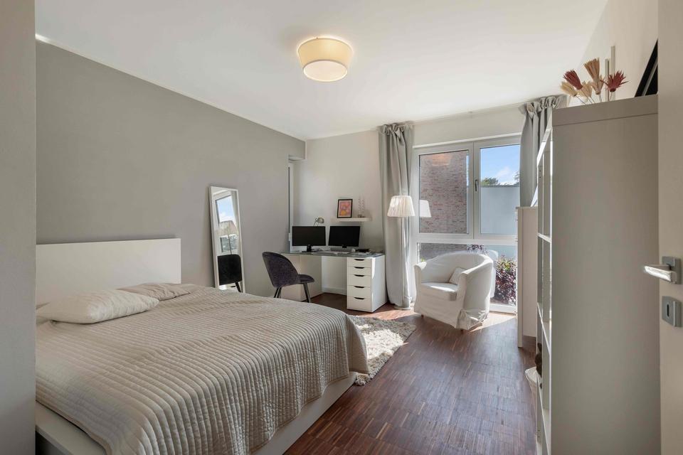 Das Staffelgeschoss ist den privaten Rückzugsräumen vorbehalten: Hier erwarten Sie ein großzügiger Master-Bedroom mit angrenzender Ankleide sowie ein luxuriöses Badezimmer. Eine freistehende Design-Badewanne und eine weitläufige Dusche setzen besondere Akzente und verleihen dieser Ebene den Charakter einer exklusiven Wellness-Suite.