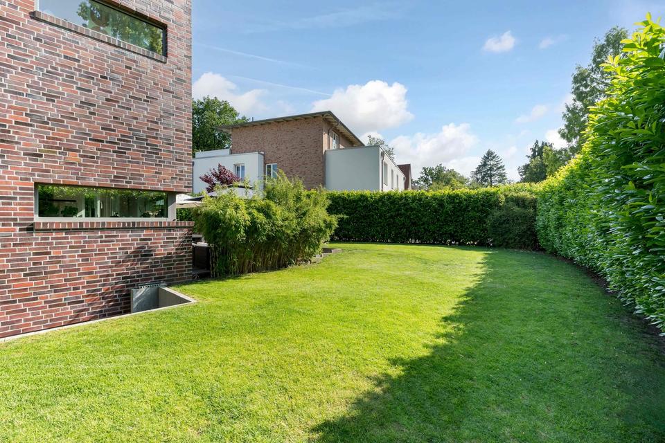 Das Grundstück umfasst ca. 742 m² und liegt in ruhiger Ecklage innerhalb eines gepflegten Wohnumfelds. Die Süd-West-Ausrichtung des Gartens garantiert ganztägig Sonne und unterstreicht die hohe Wohnqualität. Neben einem großzügigen Gartenbereich bietet das Grundstück eine repräsentative Vorfahrt. Die Umgebung ist geprägt von hochwertiger Einfamilienhausbebauung und viel Grün – ein privates, zugleich aber auch repräsentatives Wohnambiente.