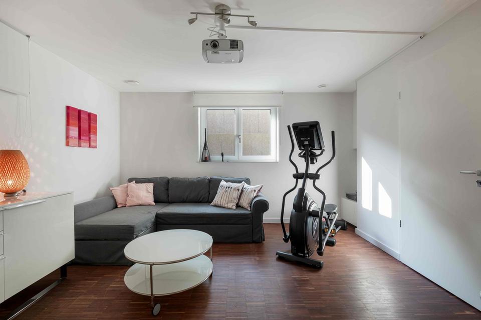 Im Untergeschoss mit einer Deckenhöhe von ca. 2,50 m finden sich zwei helle, multifunktional nutzbare Räume, die derzeit als Gäste- und Hobbyzimmer genutzt werden – ergänzt durch ein modernes Duschbad. Darüber hinaus liegt in dieser Ebene einen Technikraum sowie ein funktionaler Hauswirtschaftsraum. Auch hier sorgt eine Fußbodenheizung für zusätzliche Wohnqualität.