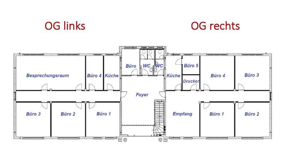-Optional: Die Büroeinheit OG links: ca. 190 m² kann hinzugemietet werden, dann beträgt die Gesamtfläche 390 m²