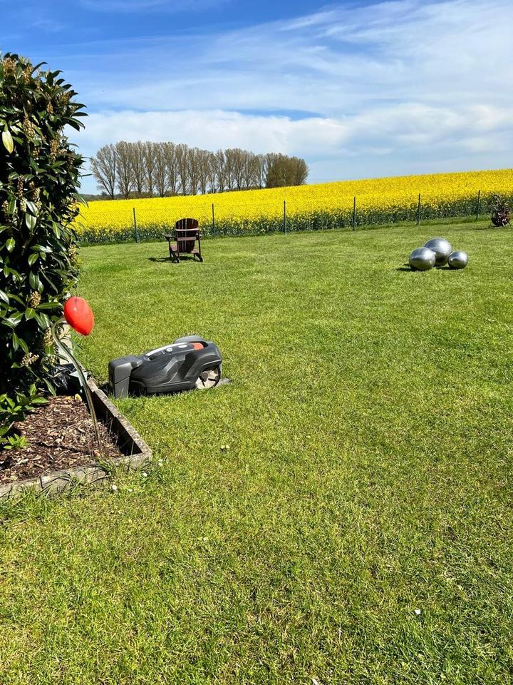 Das Grundstück ist uneinsehbar und wurde von der Gärtnerei Riechert professionell gestaltet. Ein automatisierter Husqvarna-Mähroboter sowie eine eigene Brunnenanlage zur Gartenbewässerung machen die Pflege besonders komfortabel. Mehrere Außenwasseranschlüsse und Steckdosen erhöhen die Funktionalität. Abgerundet wird der Außenbereich durch eine separate „Sundownerecke“ aus Bankirai-Holz, die zum Verweilen einlädt.