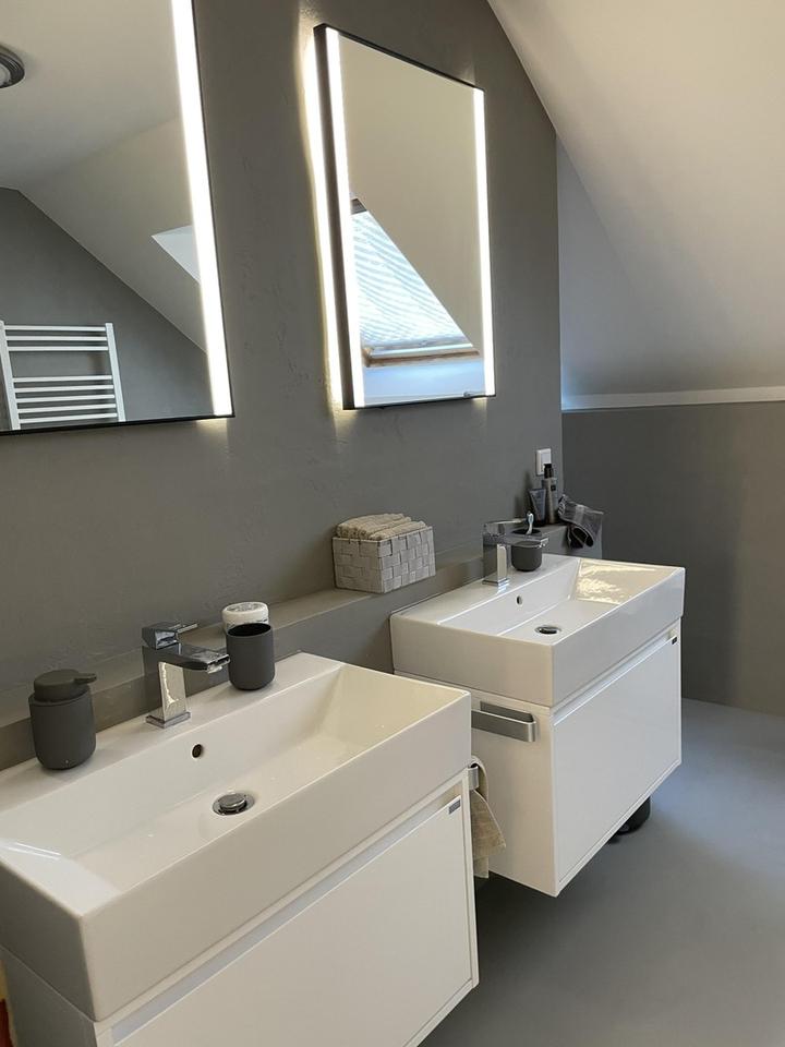 Die Immobilie überzeugt durch eine außergewöhnlich hochwertige und gepflegte Ausstattung. Das neu renovierte Badezimmer präsentiert sich modern und stilvoll, ebenso das elegant gestaltete Gästezimmer mit eigenem Gäste-WC. Im gesamten Wohnbereich wurden hochwertige Fliesen sowie exklusive Vollholz-Eichendielen verlegt, die ein warmes und edles Wohnambiente schaffen.