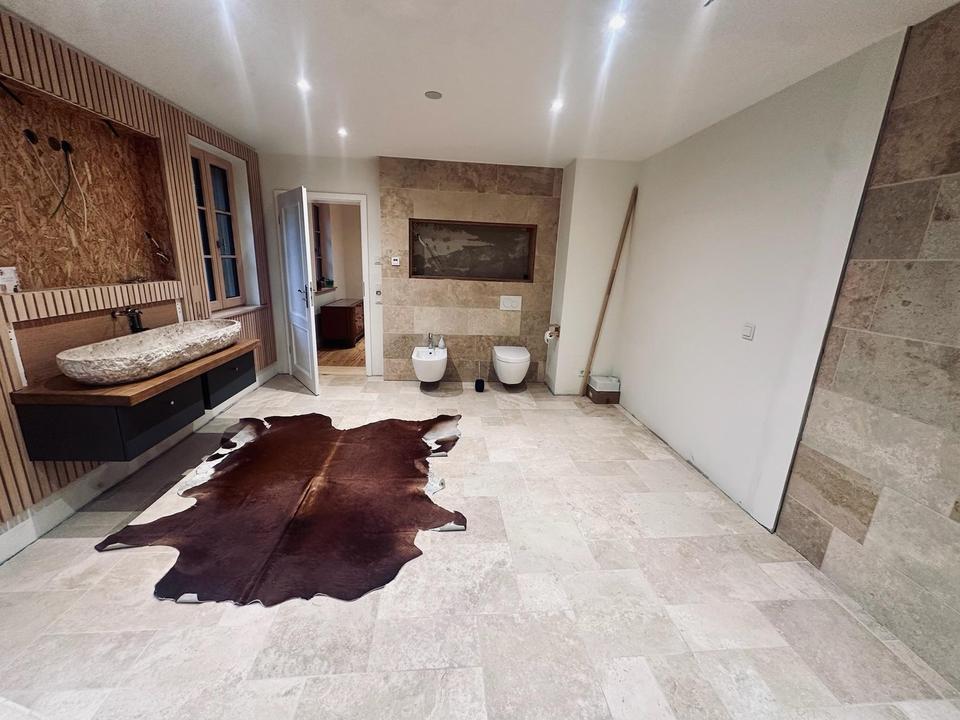 o Natursteinböden in Bad & HWR, beheizbare Spiegel, TV-Anschluss im Bad