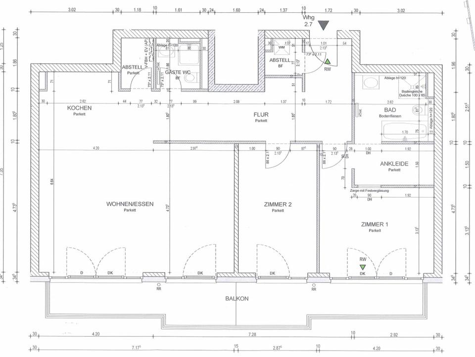 Balkon, Keller, Fahrstuhl, Vollbad, Duschbad, Einbauküche, Gäste-WC, Parkett, Fliesen