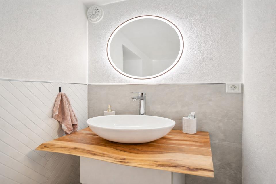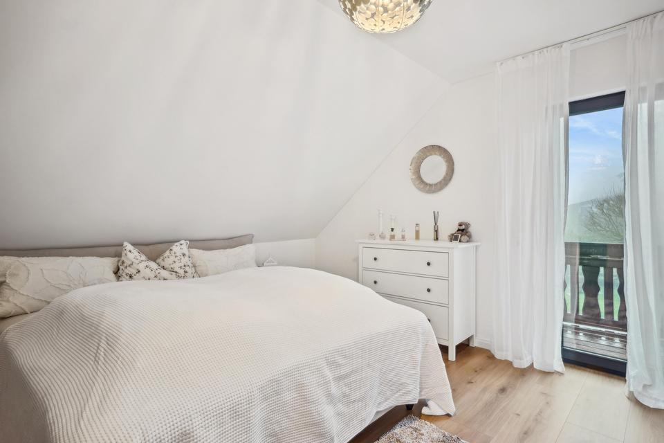 Der Wohnbereich wirkt einladend, hochwertig und ruhig – ein Ort, an dem man gerne ankommt. Ein besonderes Ausstattungsmerkmal ist der neu geschaffene Wellnessbereich mit Sauna im Untergeschoss.