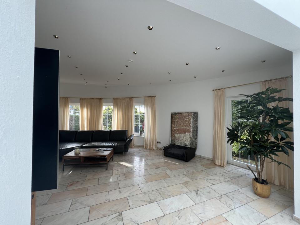 Das Haus bietet lichtdurchflutete Wohnbereiche, beeindruckende Raumhöhen in Teilbereichen sowie ein Wohnambiente, das sowohl modern als auch behaglich ist. Besonders hervorzuheben sind beispielsweise die eleganten Marmorböden im Anbau, teilweise ergänzt durch eine angenehme Fußbodenheizung. Ein überdachter Glasgang verbindet die Gebäudeteile miteinander und bietet abends einen faszinierenden Blick in den Sternenhimmel.