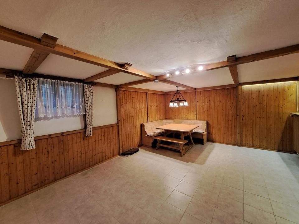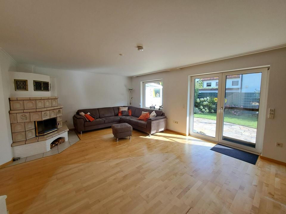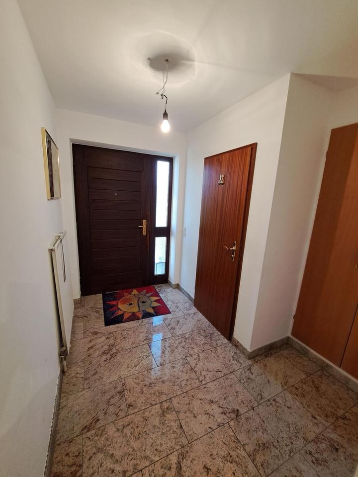 Die Doppelhaushälfte wurde 1982 in solider Ziegelbauweise auf einem real geteilten Grundstück erstellt. Der Schnitt des Hauses ist optimal aufgeteilt. Das Wohnzimmer ist hell und großzügig und zum Essbereich mit maßgefertigten hellen Holzeinbauten offen und mit Parkettboden ausgestattet. Direkt daran schließt sich die Küche an, die mit einer Einbauküche aus hellem Holz ausgestattet ist. Im Obergeschoss befinden sich 3 Schlafräume, alle mit Ahorn Laminatboden verlegt und das Badezimmer mit Whirlpool. Das Dachgeschoss wurde als Büro genutzt.