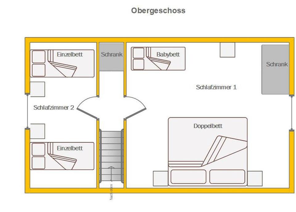 Das Ferienhaus bietet Ihnen über zwei Etagen eine schöne Urlaubsatmosphäre und einen Ort zum Wohlfühlen. Es verfügt über 2 separate Schlafzimmer, ein Wohn-Esszimmer, Küche, Flur, ein modern gefliestes Duschbad und ist ca. 50 qm groß (Grundfläche).