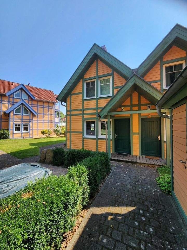 Objektbeschreibung: Maritimes Ferienhaus Diese reizvolle, voll möblierte Ferienimmobilie (Reihenendhaus ohne Begehungseinschränkung), gebaut im skandinavischen Holzbaustil, die auch zum Dauerwohnen geeignet ist, bietet die Möglichkeit der Eigennut…