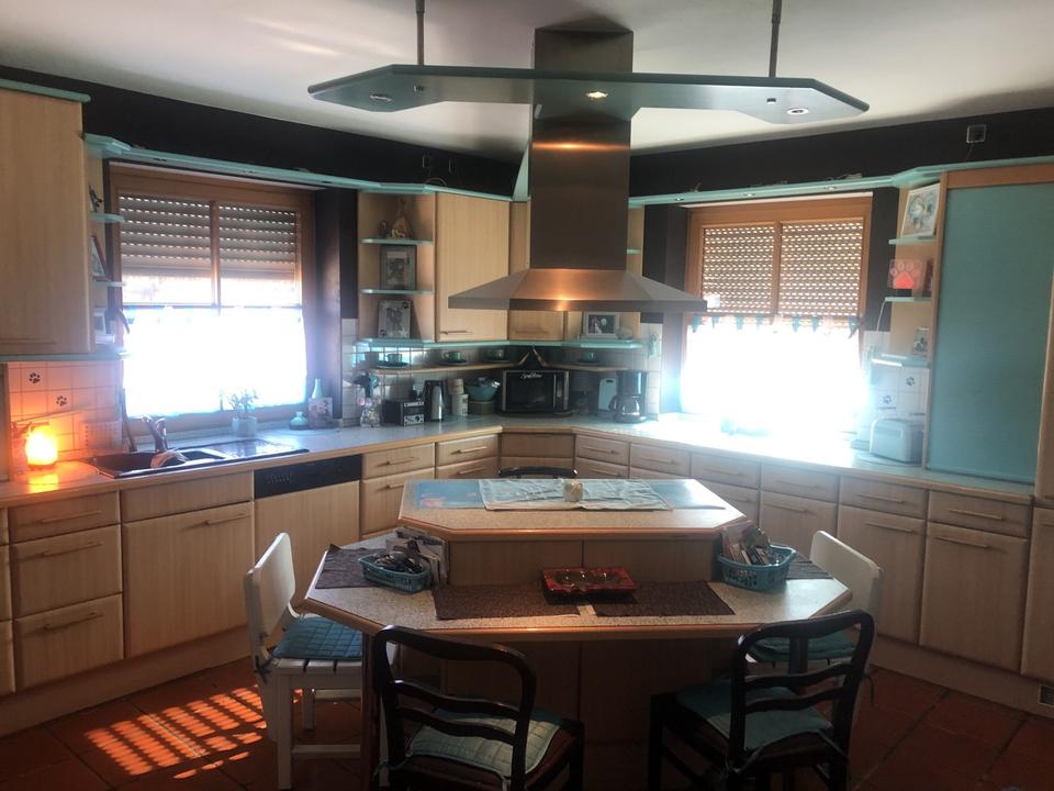 Die aussergewöhnliche Designer-Küche ist mit im Preis inbegriffen. Diese wurde miteinander geplant passt bis ins Detail. Es müssten lediglich einige Lämpchen ausgetauscht werden und die Dunstabzugshaube entweder gewartet oder direkt ausgetauscht. Die E-Geräte funktionieren immer noch einwandfrei, jedoch aufgrund des Alters sollte man evtl. den Kühlschrank erneuern .-)