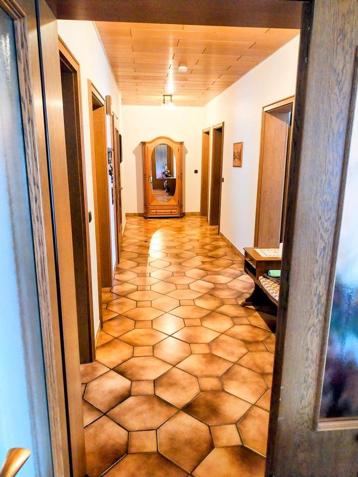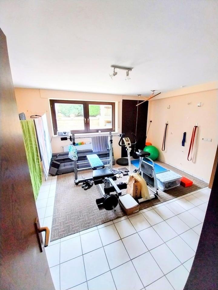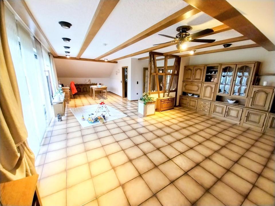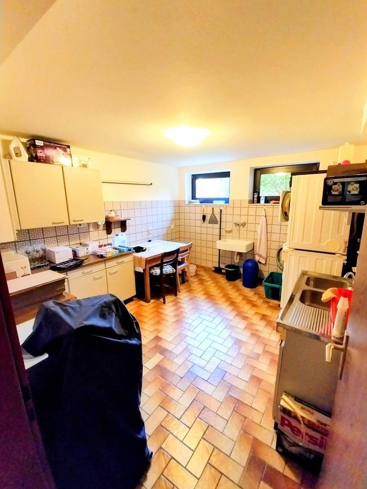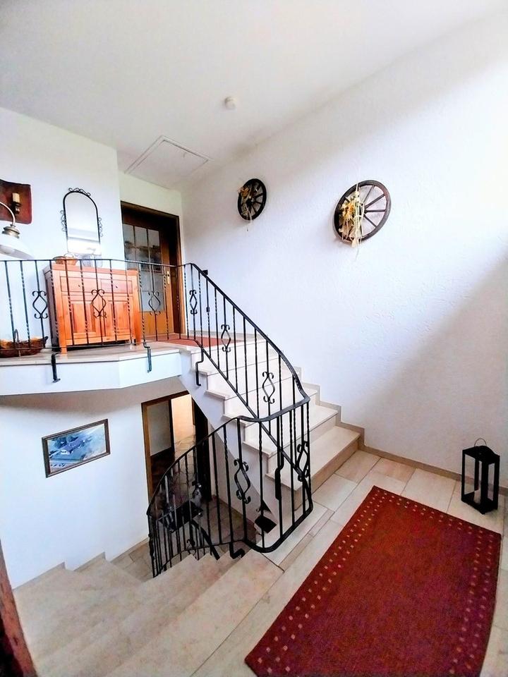 Besonderheiten sind die 6 Garagen, der gesellige (Wohn-)Keller, Fitnessraum sowie die 2022 erneuerte Öl-Zentralheizung mit Fußbodenheizung. Insgesamt stehen 9 Zimmer, 4 Bäder, 3 WCs und 3 Küchen zur Verfügung.