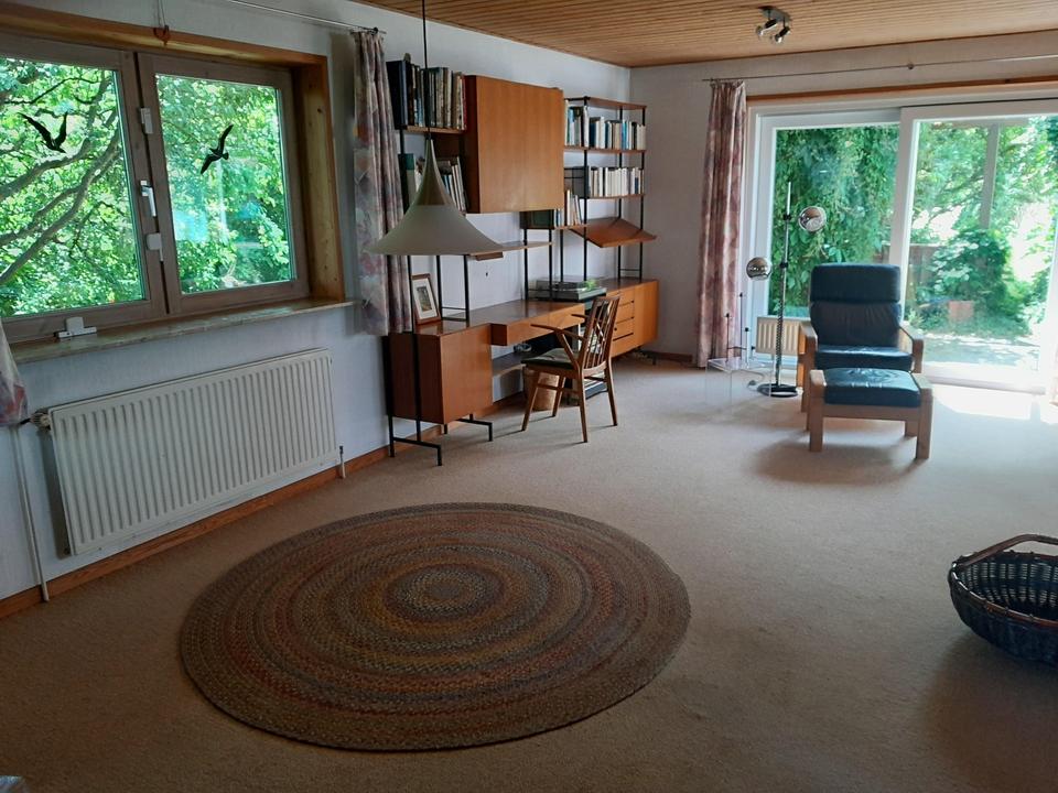 Insgesamt eine Immobilie, in der man sich wegen ihres natürlichen, gemütlichen Charmes wirklich sehr wohl fühlt. Die Terassentüren und die teils bodentiefen Fenster verbinden drinnen und draußen zu einer Einheit.