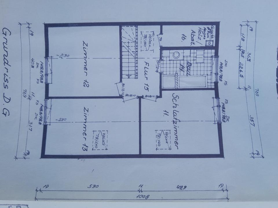 Im 1. OG befinden sich drei Zimmer, die neben dem Schlafzimmer z.B. als Kinderzimmer oder auch als Arbeits- und Gästezimmer genutzt werden können. Außerdem ist hier das große Badezimmer mit Dusche und Badewanne. Ferner ist der Brenner und Kessel der Gasheizung in einem Heizungsraum untergebracht.