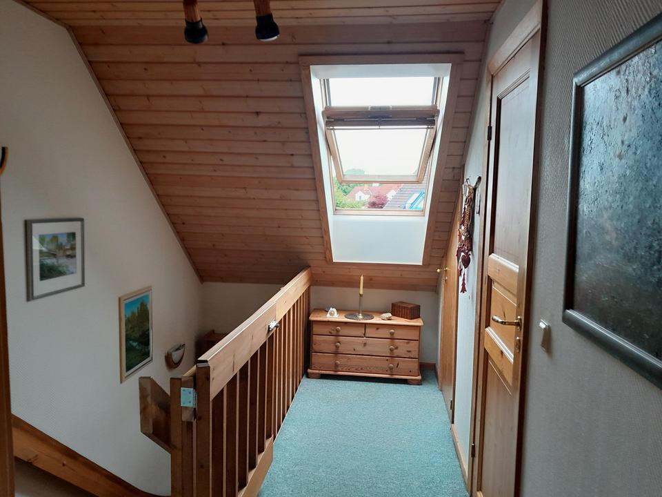 Vom Flur im 1. Obergeschoss erreicht man über eine ausklappbare Leiter den Spitzboden als Abstellraum.