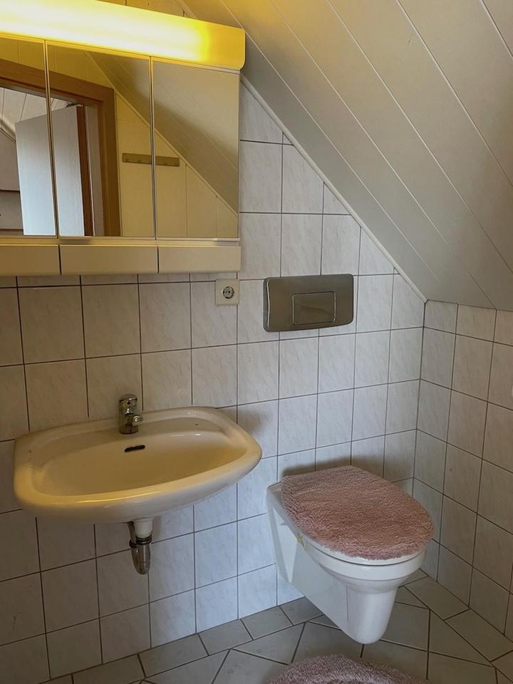 Eine Treppe führt in das Obergeschoss. In diesem befinden sich drei weitere Räume, die als Kinderzimmer, Wohnzimmer, Arbeitszimmer oder Gästezimmer genutzt werden können. Eine Toilette ist ebenfalls vorhanden sowie ein Abstellraum.