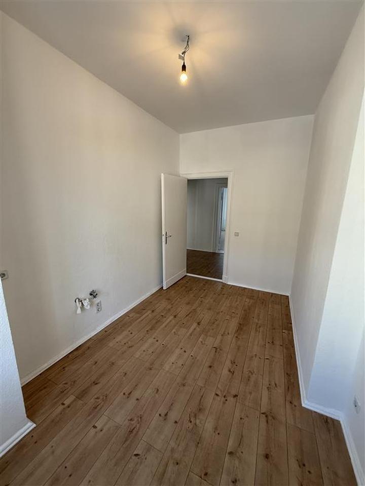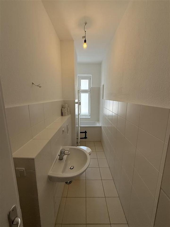 Die Wohneinheit im 2. OG besteht aus drei Zimmern, nebst Küche, Bad, Diele und Balkon. Die Zimmer sind mit einem hochwertigen Laminatboden in Dielenoptik versehen. Die Wände sind raufasertapeziert und weiß gestrichen. Das modern geflieste Bad verfügt über eine Duschwanne, eine Toilette sowie einen Waschtisch und einen Heizkörper.