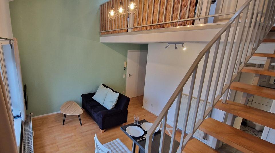 Helle, ruhige 3 Zimmerwohnung im 1 OG in einer ruhigen Seitenstraße, mit Garten, mit Küche, eigenem Stellplatz und guter Anbindung an die Autobahnen und den Nahverkehr.