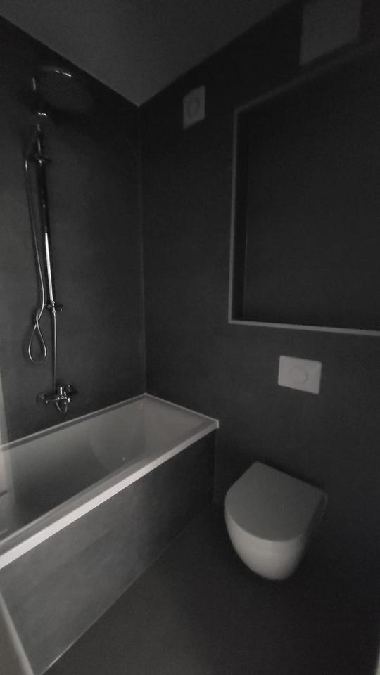 Der Wohnbereich ist mit hochwertigem Vinylboden ausgestattet, während das Badezimmer mit modernen Fliesen und einer praktischen Dusche überzeugt.
