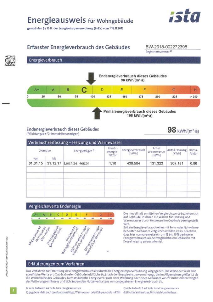 – Energieeffizienzklasse C (Verbrauch 98,0 kWh (m² x a))