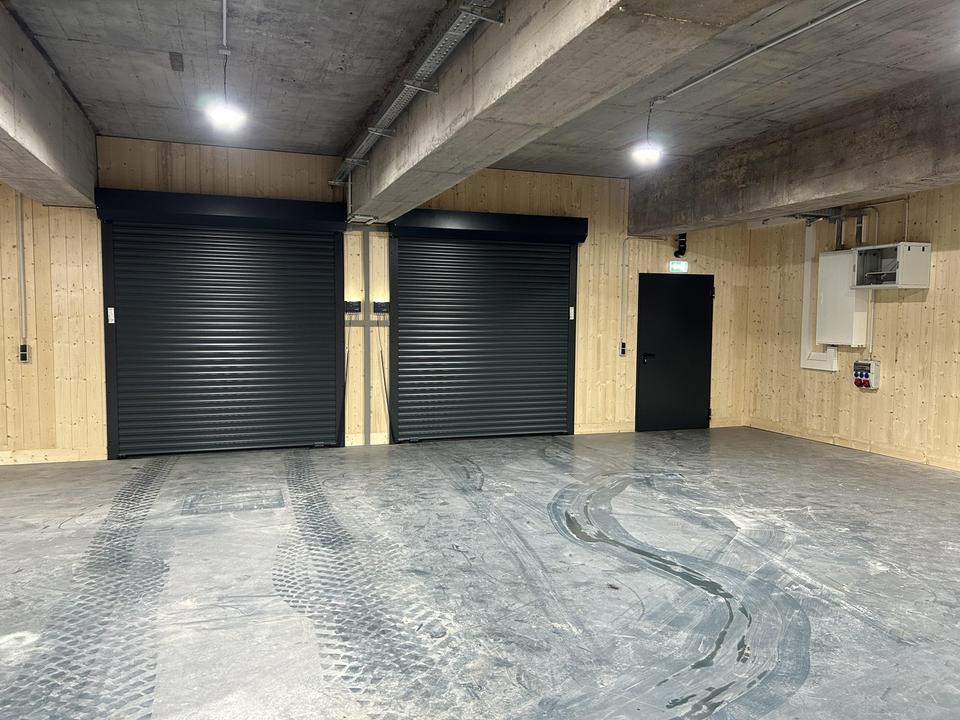 Die Fläche eignet sich ideal als Lager, Werkstatt oder für handwerkliche Tätigkeiten. Es sind zwei Rolltore vorhanden mit den Durchfahrtsmaßen Breite 228cm, Höhe 240cm. Die Flächen sind klimatisiert und können im Winter beheizt als auch im Sommer gekühlt werden. LED – Beleuchtung vorhanden