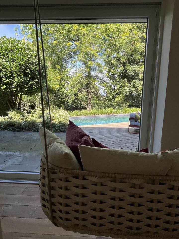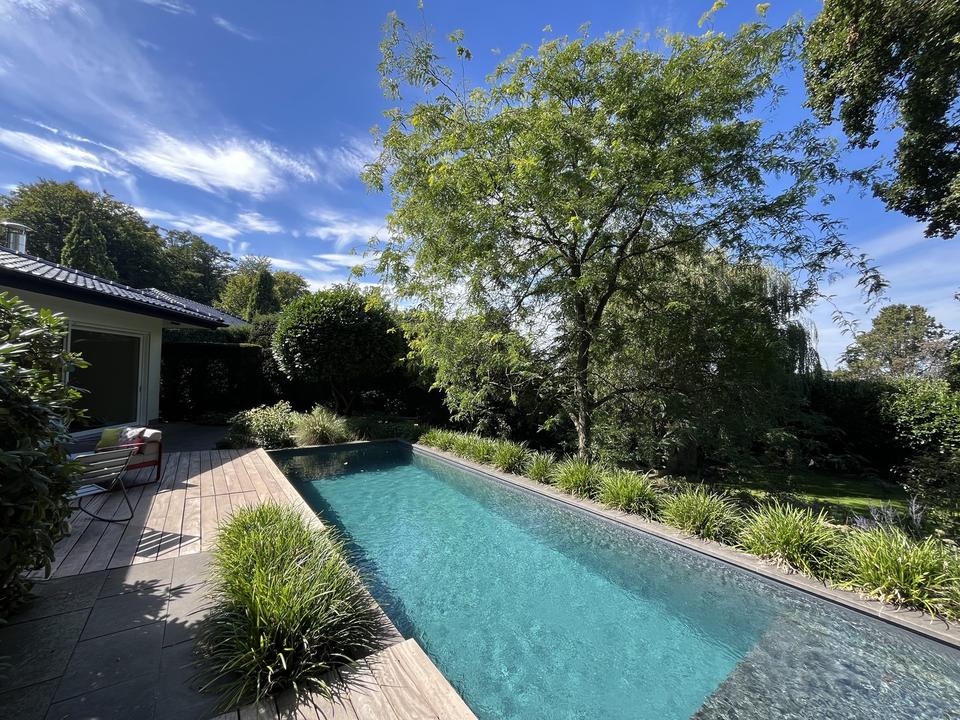 Dieses Anwesen ist mehr als ein Haus – es ist ein bewusst gestalteter Lebensraum, in dem Architektur, Natur und Stille ein harmonisches Ganzes bilden. Bodentiefe Fenster öffnen den Blick in den Garten, auf das glitzernde Wasser des Naturpools und die umgebende Vegetation. Ein Atemzug – und der Alltag fällt ab.