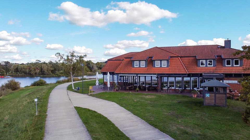 Mit der ultimativen Seelage hat dieses Haus ein absolutes Monopol. Keine andere Immobilie im Ort ist „so nah am Wasser gebaut“. Vom Eingang aus betritt man zunächst den gemütlichen, lichtdurchfluteten Gastraum mit einladendem Tresen. Von dort aus erreicht man auf der rechten Seite die mit hochwertigen Geräten umfangreich ausgestattete Küche. Links geht es weiter in den großen Saal mit anschließender Empore.