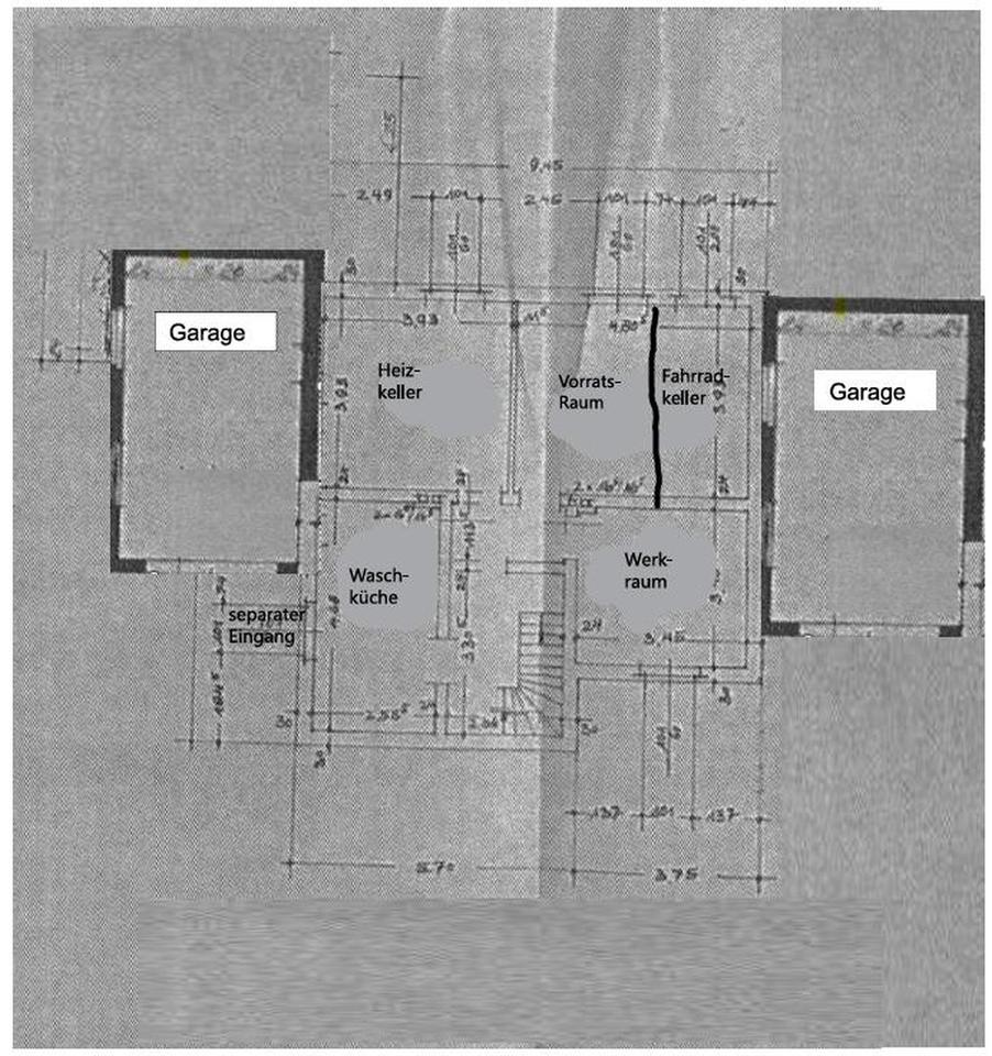 Keller: große Waschküche mit separatem Eingang; Flur; Heizungsraum (Ölzentralheizung, Warmwasseraufbereitung, Öltank 5000 Liter Fassungsvermögen); großer Vorratsraum; Werkstattraum;