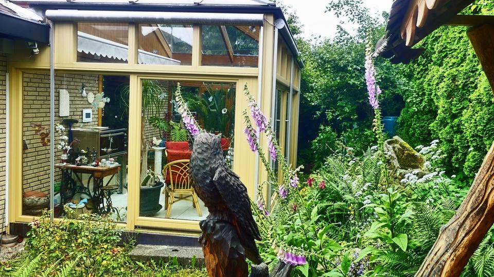 Der Zugang zum Garten ist durch die Hanglage ebenerdig über die Terrasse oder den Wintergarten möglich.