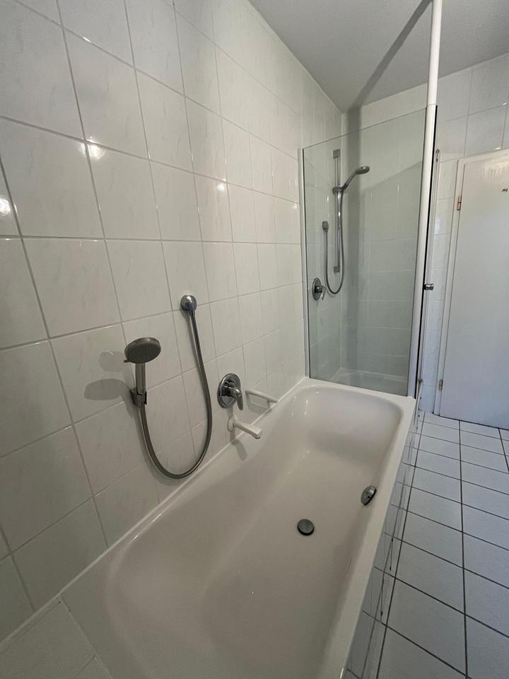 Tageslichtbad mit Badewanne, WC und Dusche – ideal für flexible Nutzung.