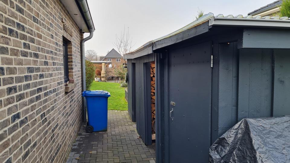 Elektrische Rollläden an allen Fenstern und an den beiden Türen zum Garten hin.