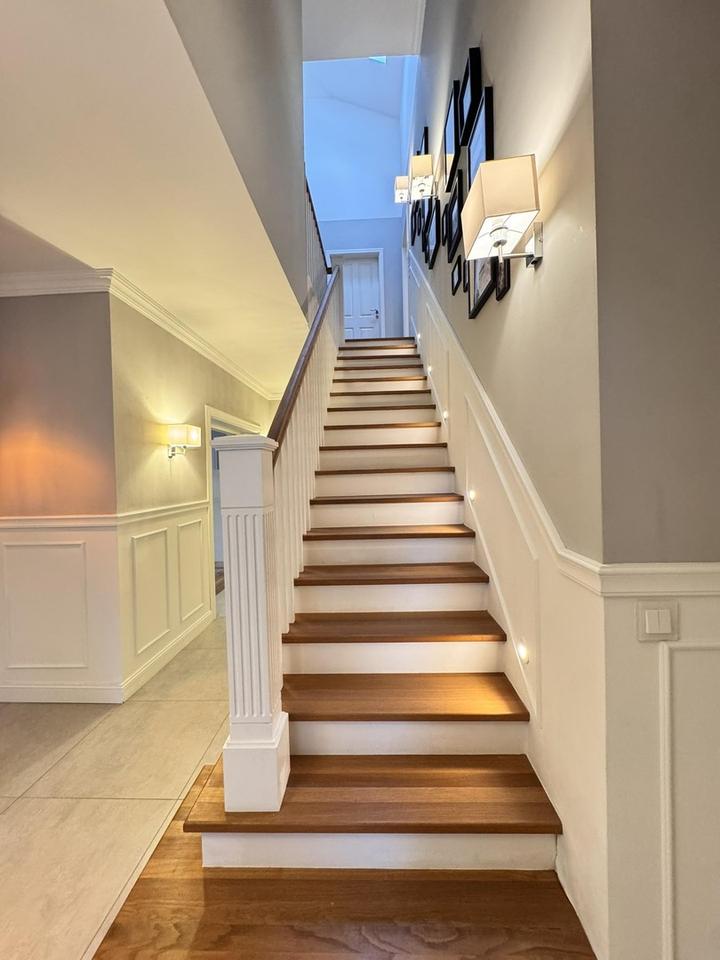 Die 2016 fertiggestellte Villa bietet fünf einladende Zimmer, zwei Badezimmer sowie ein separates Gäste-WC – ideal für Familien, Homeoffice und Gäste. Für behaglichen Wohnkomfort sorgt eine Fußbodenheizung, die auf beiden Ebenen gleichmäßige Wärme liefert und die Wände frei für Möbel und Kunst lässt. 2025 erfolgte die letzte Modernisierung; ein aktueller Bedarfsausweis wurde erstellt und liegt vor.