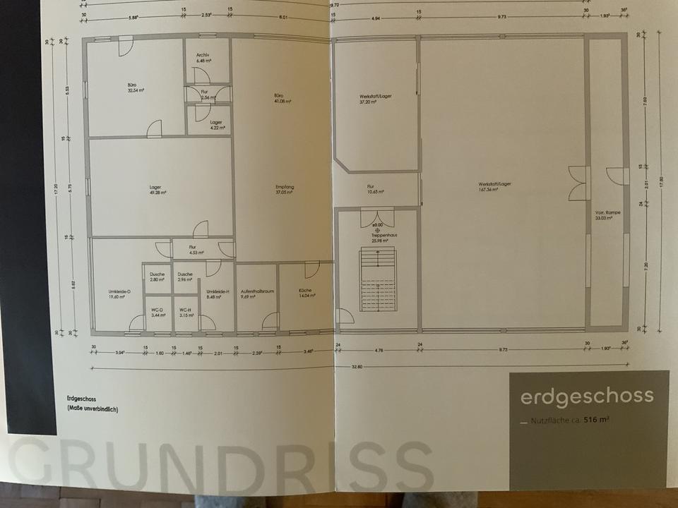 Objektbeschreibung: Sehr gepflegt. Keinerlei reparaturstau! Im jahr 2000 umfassend renoviert Vielseitig nutzbar, da innenwände überwiegend rigips, also raumgestaltung wie gewünscht einfach zu ändern. Büros, produktionshalle, sozialräume, rampe, st…