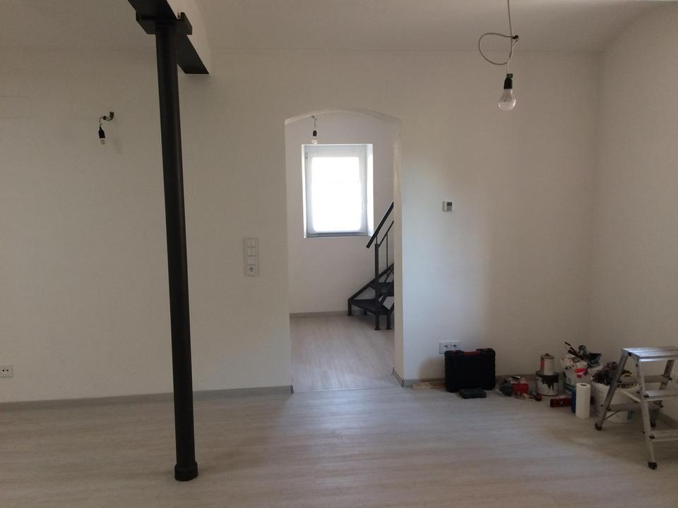 Die abgeschlossene Wohnung ist Teil eines alten Steinhauses aus 1886, es wurde in 2019/2020 renoviert und energetisch saniert (Wärmedämmung der Wände, Decken und Böden). Fenster, Türen, Fußboden, Treppe, Badobjekte, Leitungen und Installation wurden erneuert. Erstbezug war in 2019, die Räume werden in renoviertem Zustand übergeben.
