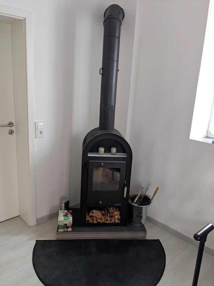 Alle Räume im EG besitzen eine Fußbodenheizung, die über die zentrale Wärmepumpe (seit 2023) versorgt wird, im Bad und im 1.OG befinden sich zusätzliche Elektroheizkörper, im Vorraum gibt es einen Kaminofen (für Holzverbrennung). Der Fußbodenbelag in der gesamten Wohnung besteht aus Vinyl.