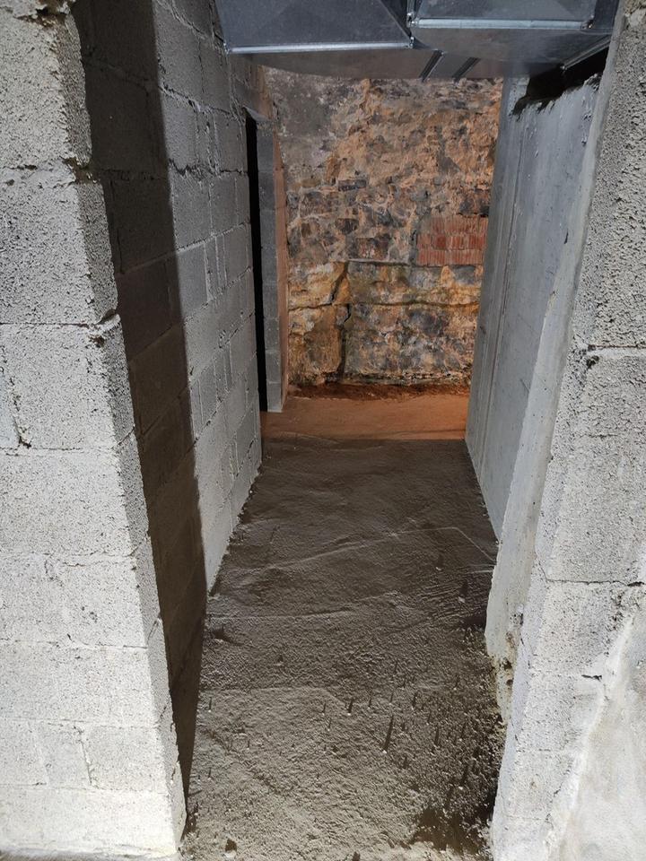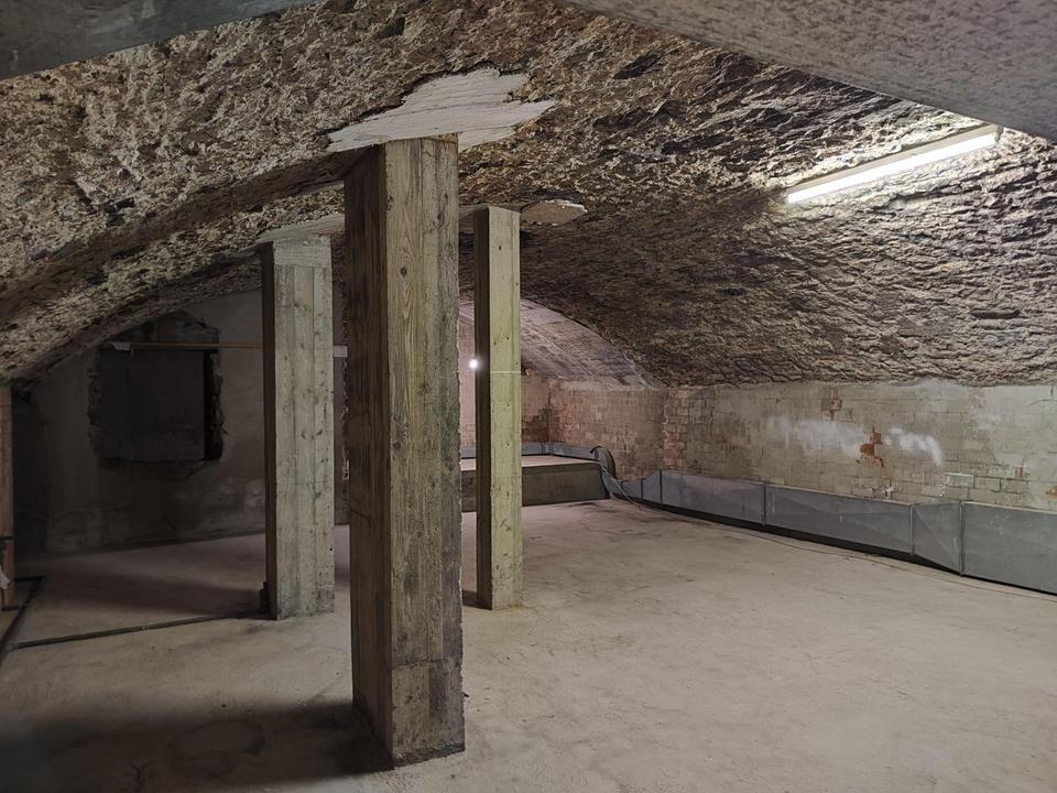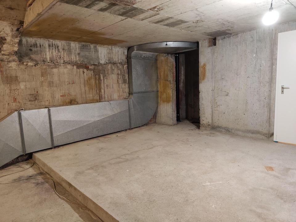 Ein kleiner Makel besteht im hinteren Bereich: Dort weist eine Wand leichte Feuchtigkeit auf, ähnlich einem normalen, unbehandelten Gewölbekeller. Die Haupträume sind hiervon nicht betroffen. Für viele Nutzungen stellt dies kein Problem dar, alternativ kann der betroffene Bereich abgetrennt oder separat behandelt werden.