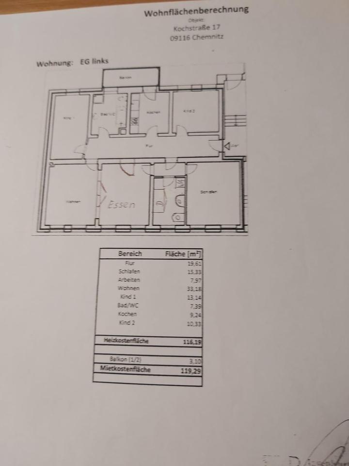 Die Wohnung liegt in der Kochstraße 17, 09116 Chemnitz, in einem ruhigen und gewachsenen Wohngebiet. Schulen, Kindergärten, Einkaufsmöglichkeiten und der öffentliche Nahverkehr sind gut erreichbar. In der unmittelbaren Umgebung findet man auch einen Spielplatz und den Stadtteilpark am Pleißenbach.