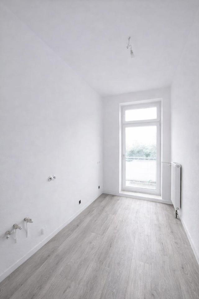 Die Küche erhält einen neuen Vinylboden in grauer Holzoptik und bietet direkten Zugang zum Balkon. Optional kann eine Einbauküche gegen Aufpreis durch den Vermieter gestellt werden. Ein Kellerraum steht zur Nutzung zur Verfügung. Der Innenhof des Hauses kann gemeinschaftlich genutzt werden. Ausreichend öffentliche Stellplätze befinden sich direkt vor dem Objekt.