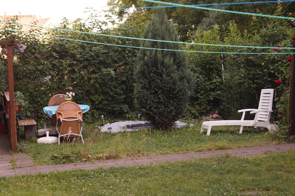 Der Hof mit Gartenlaube bietet Gelegenheit zur Entspannung.