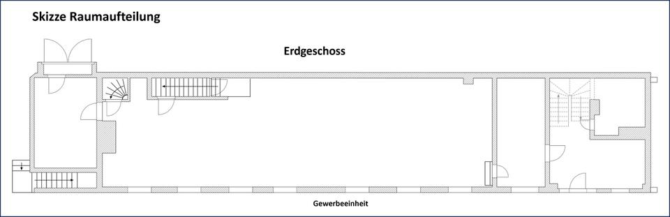 Die Gewerbeeinheit (EG/OG) mit ca. 255 qm Gebäudefläche ist vielseitig nutzbar. Sie eignet sich für Praxis, Büro oder Handel. Durch die Nutzungsfreiheit kann sie auch als Wohnraum saniert werden. Die Außenfläche mit ca. 130 qm verfügt über eine eigene Zufahrt und kann als Stellfläche genutzt werden.