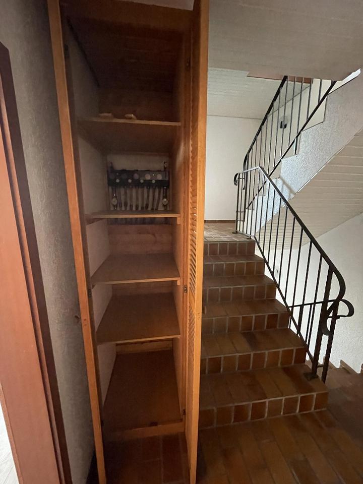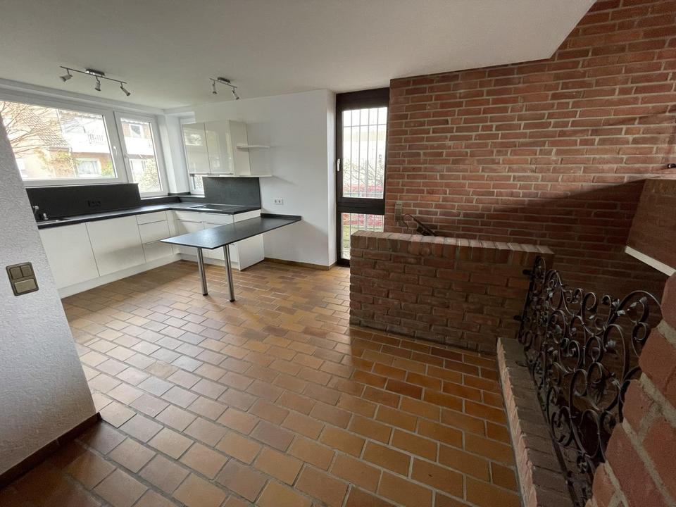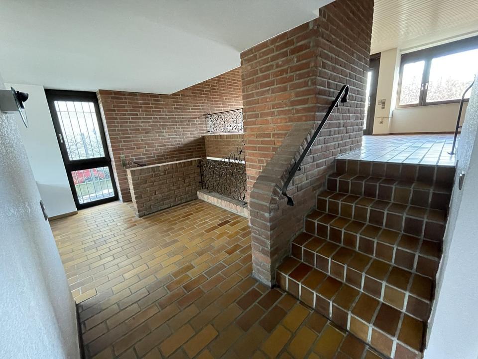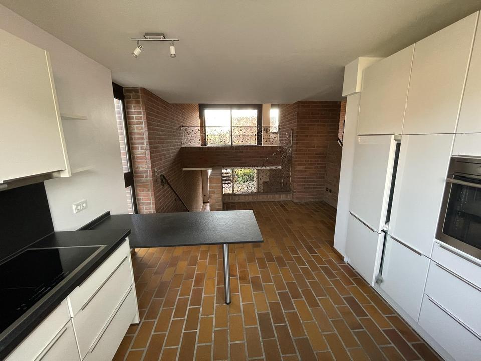 Von dort gelangen Sie mit wenigen Stufen nach unten ins Wohnzimmer mit gemütlichem Kamin und direktem Zugang zur herrlichen Terrasse und Garten – oder aber mit ein paar Stufen nach oben, ins Esszimmer mit direktem Zugang zum großzügig angelegten Balkon (saniert 2020).