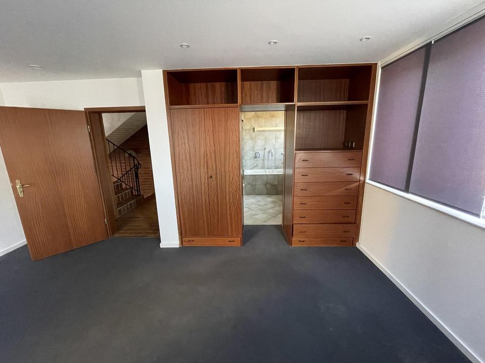 Weiter geht´s mit der nächsten Split-Level-Etage; hier befindet sich das Elternschlafzimmer. Einbauschränke umranden den Zugang ins separate, eigene Elternbadezimmer. Ein echtes Highlight!