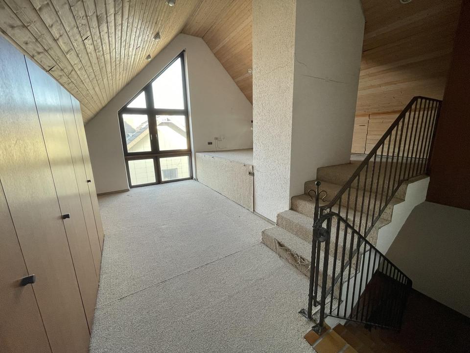 Im Dachstudio erwartet Sie eine offene Multifunktionsfläche auf zwei Ebenen. Spielen, Feiern, Hobby, oder “nur“ als Staufläche – den Ideen sind hier keine Grenzen gesetzt. Praktische Einbauschränke warten darauf gefüllt zu werden.