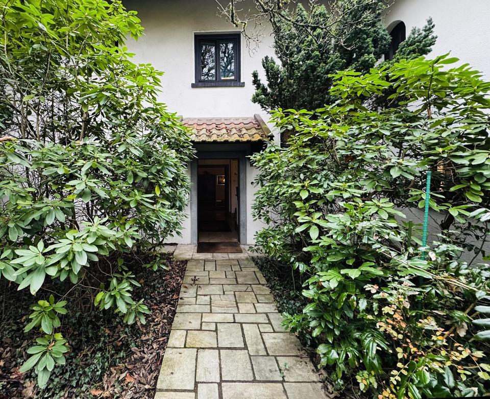 An das Lese-/-Fernsehzimmer schließt sich eine Einliegerwohnung mit zwei Räumen und eigenem WC an, welches zum Bad erweitert werden kann. Die Einliegerwohnung hat zwei eigene Zugänge zu beiden Seiten des Gartens.