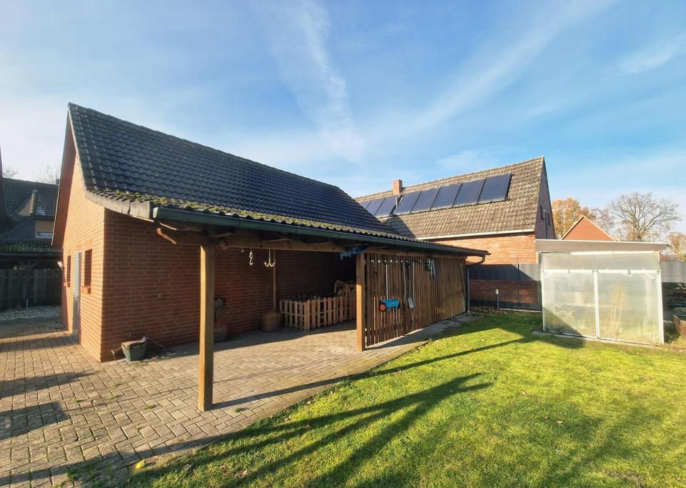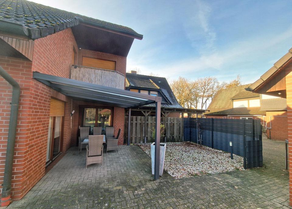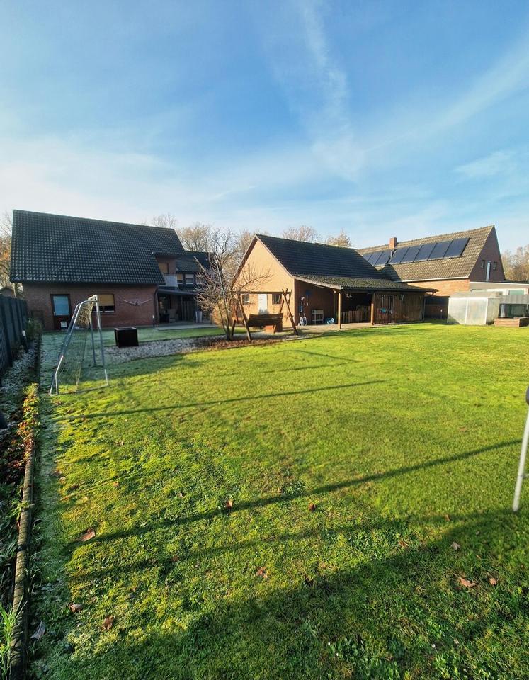 Das großzügige Zweifamilienhaus befindet sich in ruhiger Wohnlage von Garrel und setzt sich aus einem Bestandsgebäude von 1952 sowie einem modernen Anbau aus 1996 zusammen. Die Verbindung des Dachgeschosses beider Gebäudeteile schafft zwei große Wohneinheiten mit separaten Zugängen. Der hintere Hausteil bietet dank Kamin, überdachter Terrasse und Balkon besonderen Wohnkomfort.