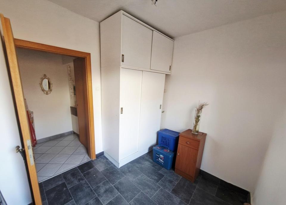 Flur, Küche, Esszimmer, Wohnzimmer, zwei Schlafzimmer, Hauswirtschaftsraum, Badezimmer; Keller als zusätzliche Abstellfläche
