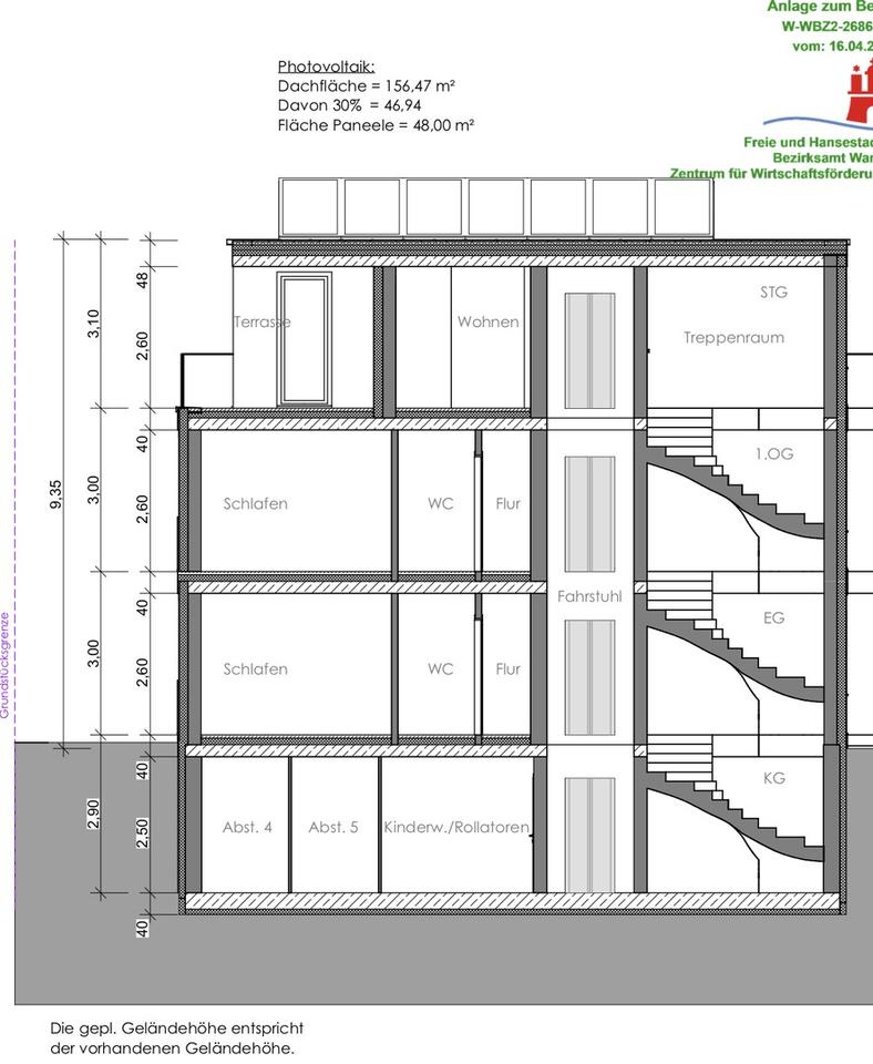 Für den vorderen Grundstücksbereich liegt eine vollständige Baugenehmigung (samt Baumgutachten), erteilt im April 2025 vor, wodurch eine hohe rechtliche und planerische Sicherheit gegeben ist.