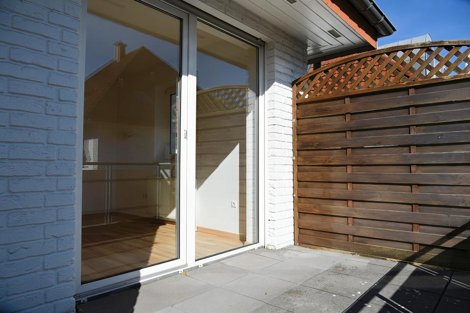 Arbeits-/Kinderzimmer sowie Wohnzimmer haben Zugang zu dem nach Süden ausgerichteten Balkon mit Blick in den Garten. Schlafzimmer und Küche sind nach Norden ausgerichtet. Alle Aufenthaltsräume, mit Ausnahme des Schlafzimmers, haben bodentiefe Fenster mit Aussenrolladen.