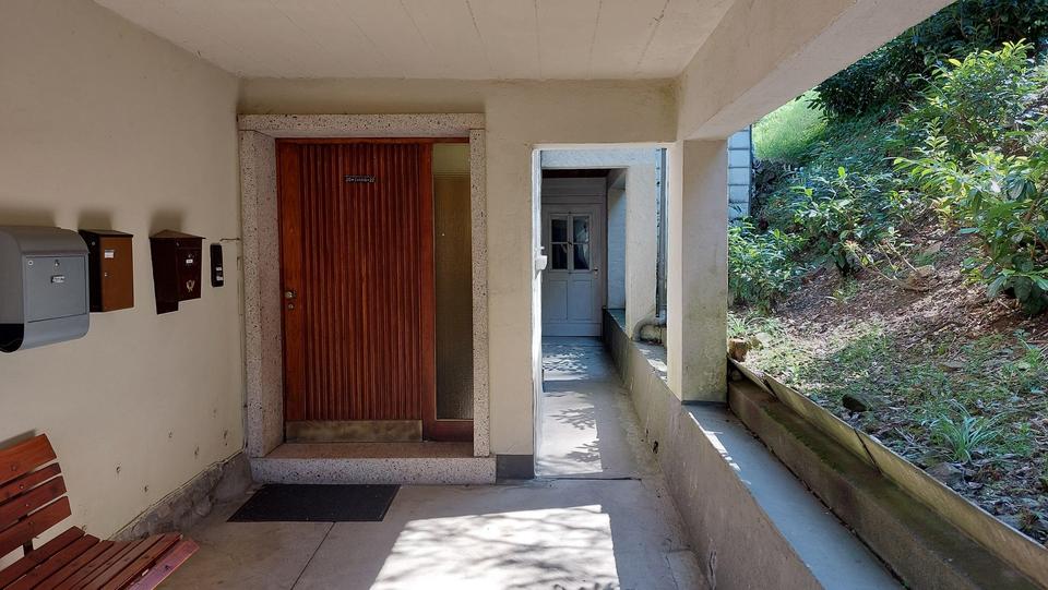 Die Terrasse ist aktuell in einem sehr schlechten Zustand und muss erneuert werden, das Foto zeigt einen alten Stand, als Potential.